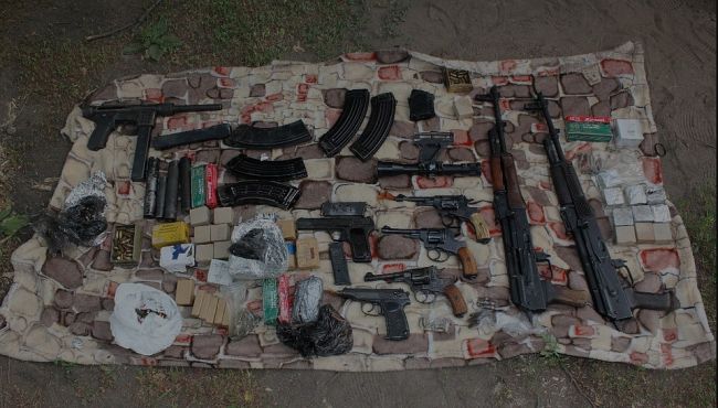 Сотрудники Министерства внутренних дел ЛНР изъяли в нежилом доме в Перевальском районе автоматы, гранатометы, гранаты, тротил и более тысячи патронов.
