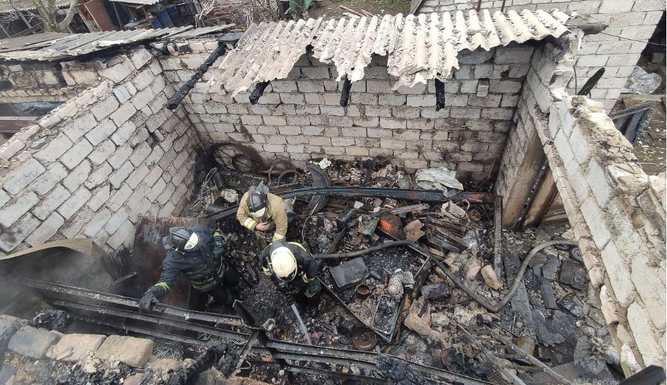 В службу 101 Алчевска поступило сообщение о том, что в переулке Административном горит частный дом. К месту происшествия прибыли силы и средства пожарно-спасательных частей №18 и №19. На этот момент пламенем была охвачена крыша, началось обрушение конструкций, горели 4 комнаты, а также пристройка, в которой располагался гараж.