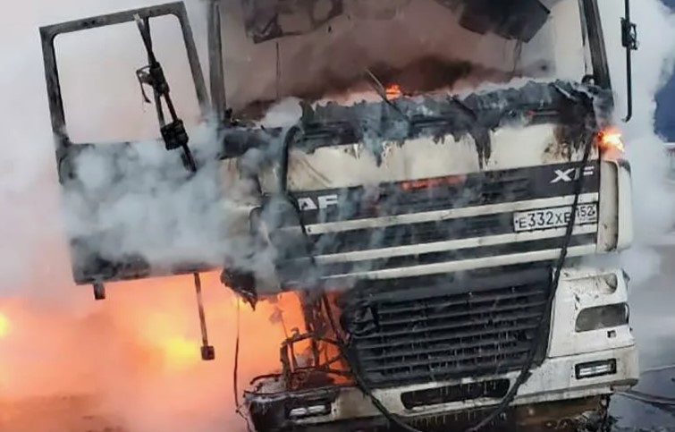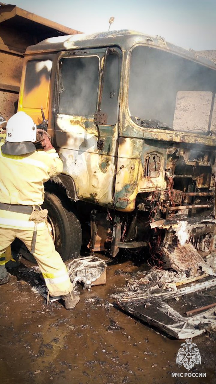 В результате аварийного режима работы электросети в моторном отсеке самосвала SHAANXI SX 3255D повреждены кабина и моторный отсек транспортного средства.