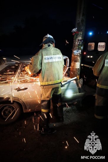 Автомобиль ВАЗ 2114 врезался в столб. Водитель не пострадал, выбрался самостоятельно. 48-летний пассажир, находившийся на переднем сидении, оказался зажат конструкциями машины. Требовалась помощь в его извлечении.