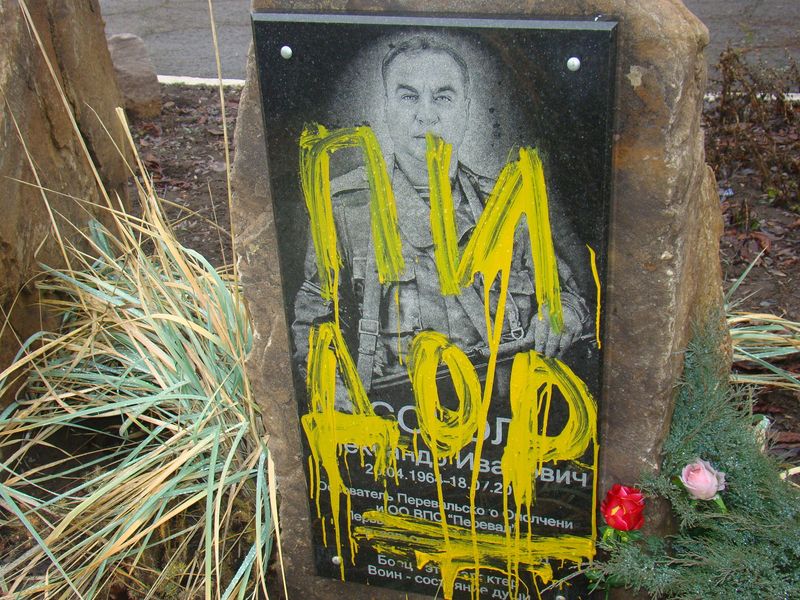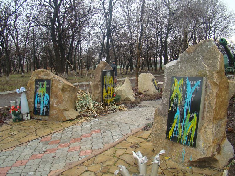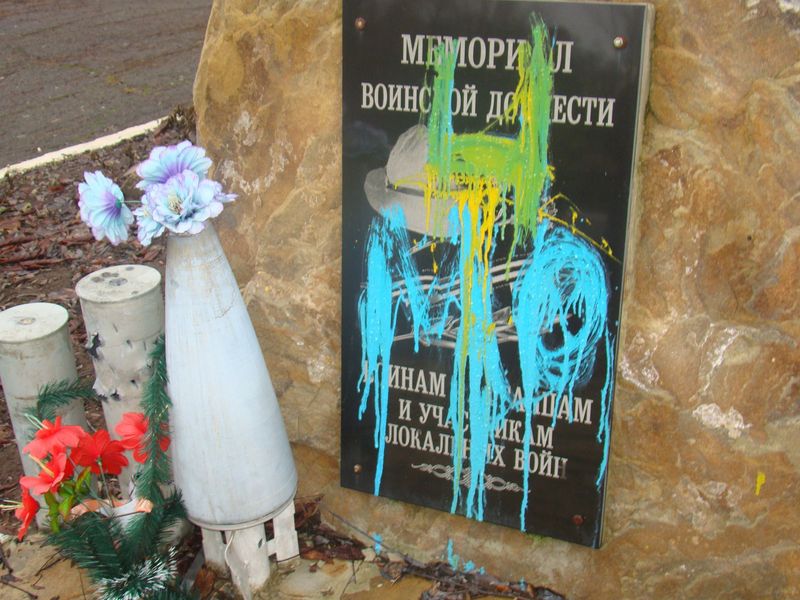 В Перевальске неизвестные вандалы облили краской мемориалы погибших афганцев и ополченцев.