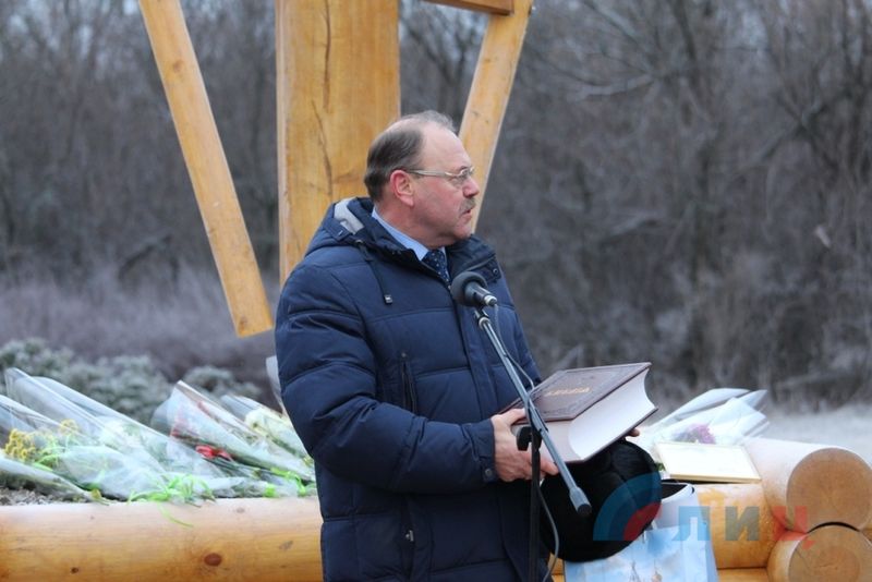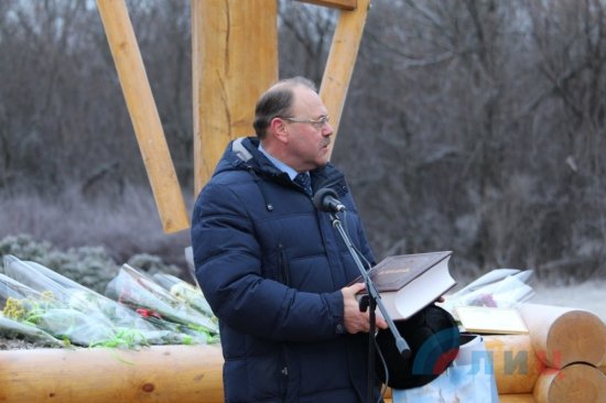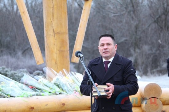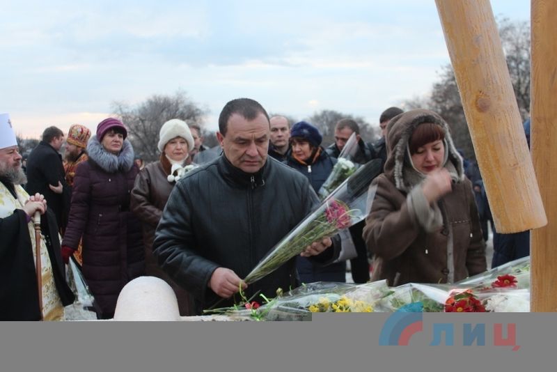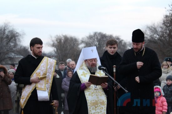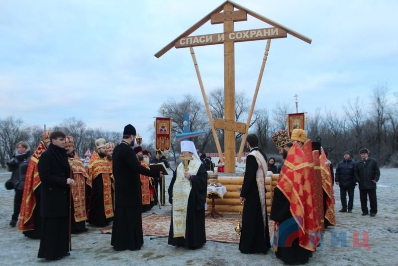 Сегодня, 9 января, на въезде в Славяносербский район прошла торжественная церемония открытия и освящения поклонного креста, привезенного в дар от православной общественности Санкт-Петербурга.