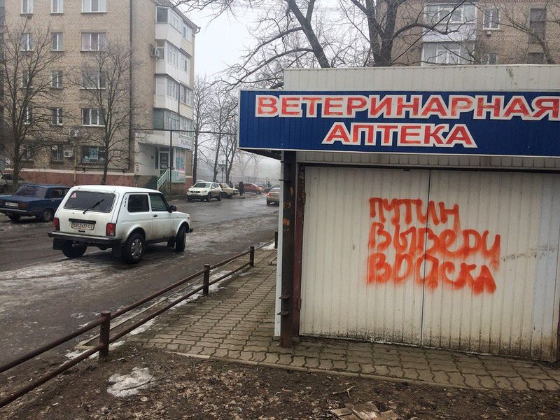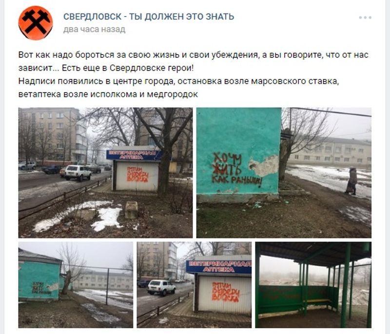 В Свердловске неизвестные разрисовали здания и остановки проукраинскими граффити, заявляя, что хотят «жить как раньше».