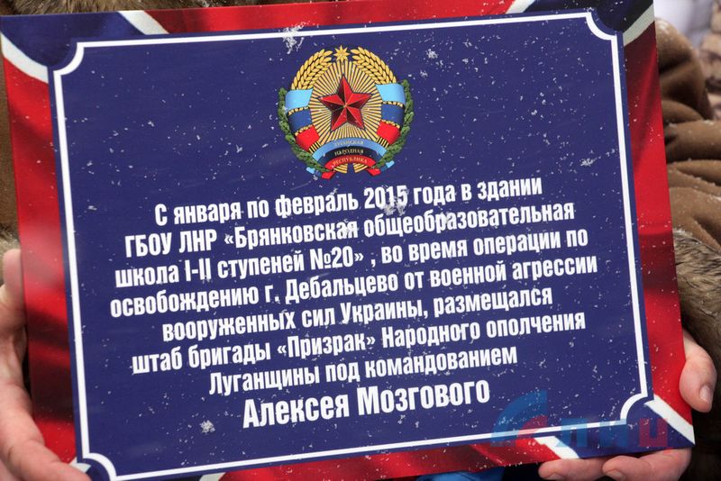 Сегодня, 12 февраля, в школе №20 поселка Южная Ломоватка прошло торжественное открытие таблички, на которой указано, что во время Дебальцевско-Чернухинской операции в данном образовательном учреждении находился штаб бригады «Призрак».