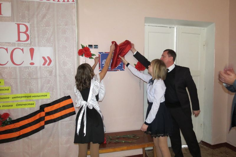 Почетное право открытия памятной таблички предоставили Моргунову, начальнику штаба бригады «Призрак» в период Дебальцевско-Чернухинской операции Юрию Шевченко, президенту школы и представителю Брянковского молодежного совета при главе администрации.