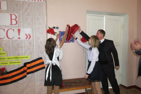В поселке Южная Ломоватка в школе №20 открыли табличку, посвященную бригаде «Призрак»
