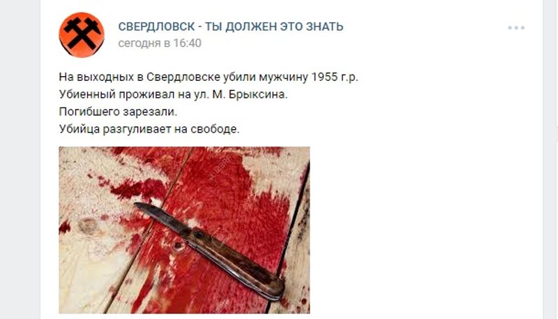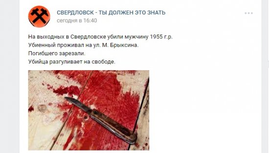 На выходных в Свердловске неизвестный зарезал мужчину.