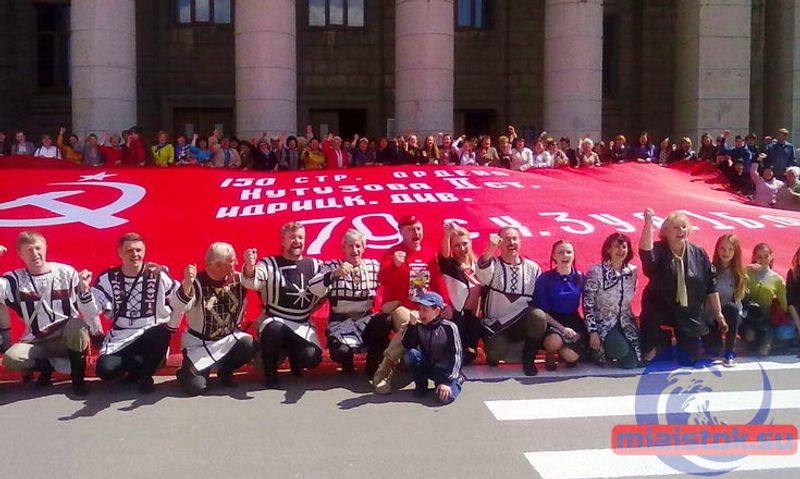 Также зрителям представили видеоролик «Живите за нас», где красной нитью проходит тема патриотического воспитания подрастающего поколения. Далее перед жителями Краснодона выступил ансамбль «Мурома». По окончании концерта все зрители вместе с артистами вышли на площадь Краснодона, где развернули большое Знамя Победы.