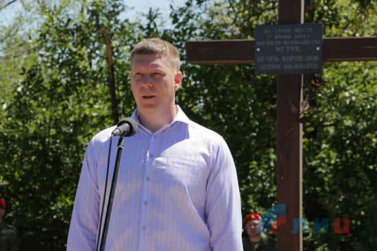 Сегодня, 17 июня, на месте гибели журналистов Всероссийской государственной телерадиокомпании Игоря Корнелюка и Антона Волошина на въезде в поселок Металлист Славяносербского района состоялся митинг-реквием.