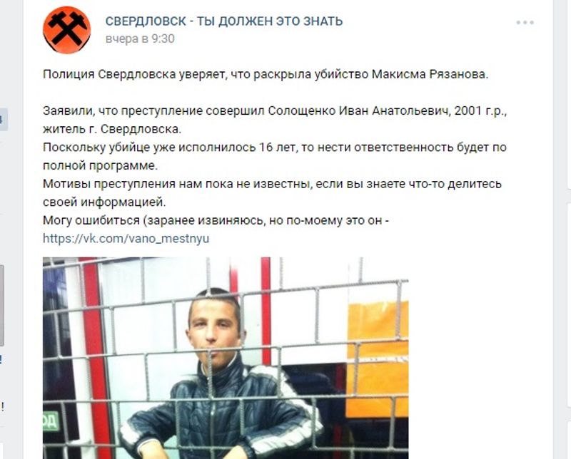 В соцсети появилась информация о том, что полиция Свердловска нашла убийцу без вести пропавшего 16-летнего парня, чей труп нашли в колодце.