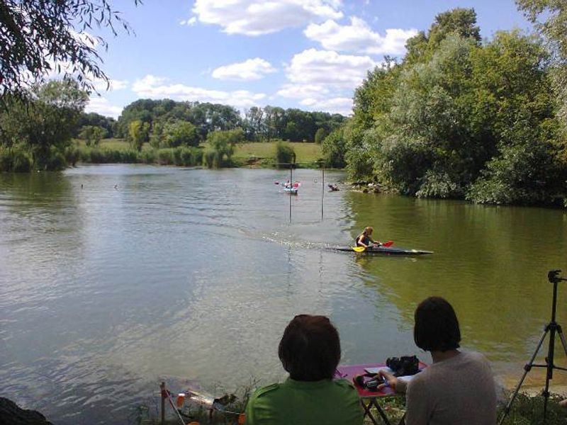 Соревнования по гребному слалому прошли накануне Дня физкультурника в городе-спутнике Красного Луча Петровское.
