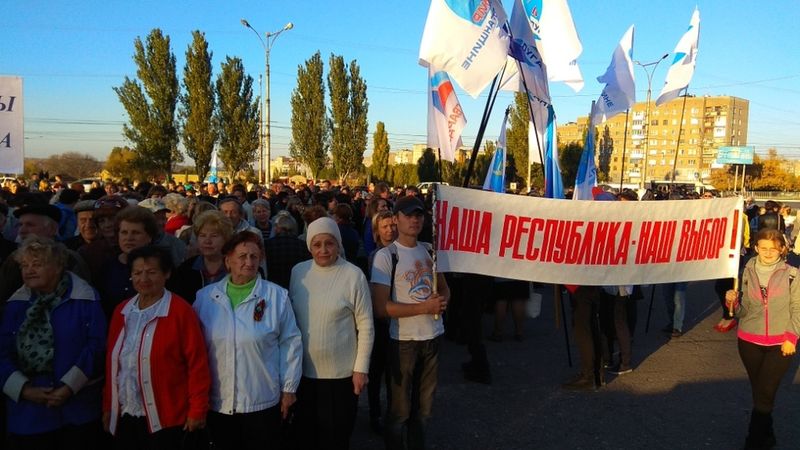 Митинг в поддержку кандидатов в депутаты Народного Совета от общественного движения «Мир Луганщине» и кандидата на должность главы ЛНР, исполняющего обязанности руководителя Республики Леонида Пасечника состоялся в Алчевске.