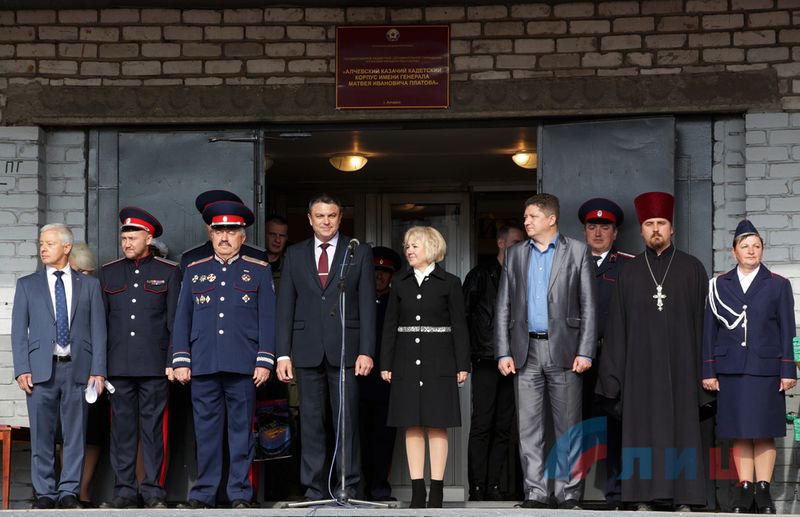 Исполняющий обязанности главы ЛНР Леонид Пасечник принял участие в церемонии открытия памятника атаману Матвею Платову, установленному на территории Алчевского казачьего кадетского корпуса.