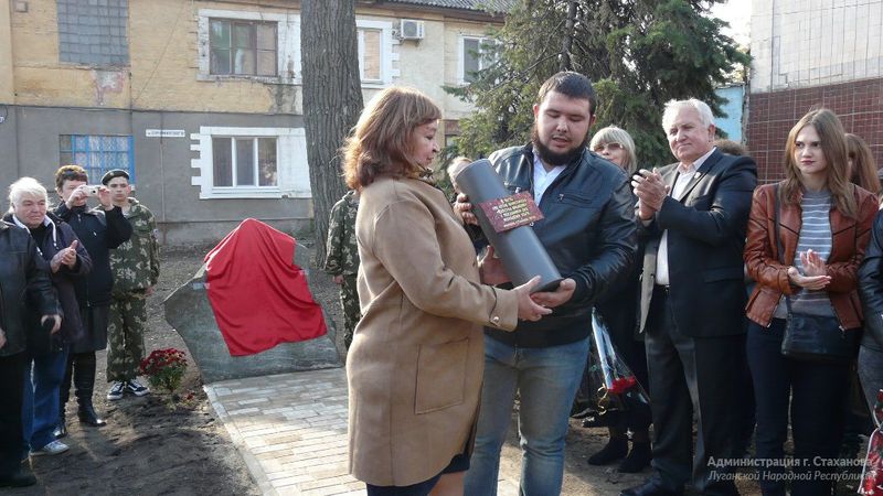 Право открыть памятный знак по случаю 100-летия Всесоюзного Ленинского коммунистического союза молодежи было предоставлено секретарю комсомольской организации 80-х годов Сергею Жевлакову и члену бюро Стахановского городского комитета комсомола, председателю городского Совета ветеранов Евгению Шумейко.