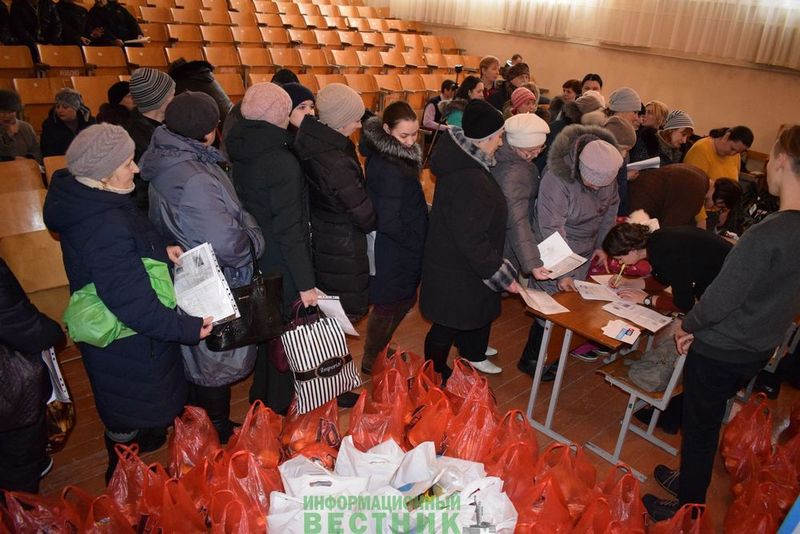 Всего было доставлено 100 наборов. «В набор входят различные крупы, консервы, плавленый сыр, соки, фрукты. Набор получился очень большим и тяжелым. Я думаю, люди, которые их получили, будут очень довольны, когда дома его откроют»,- убеждена Антонина Мешкова.