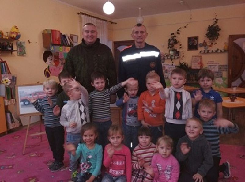 Сотрудники спасательной службы в процессе поучительной беседы показали воспитанникам детских садов пожарный щит и рассказали о его предназначении, чем он укомплектован.