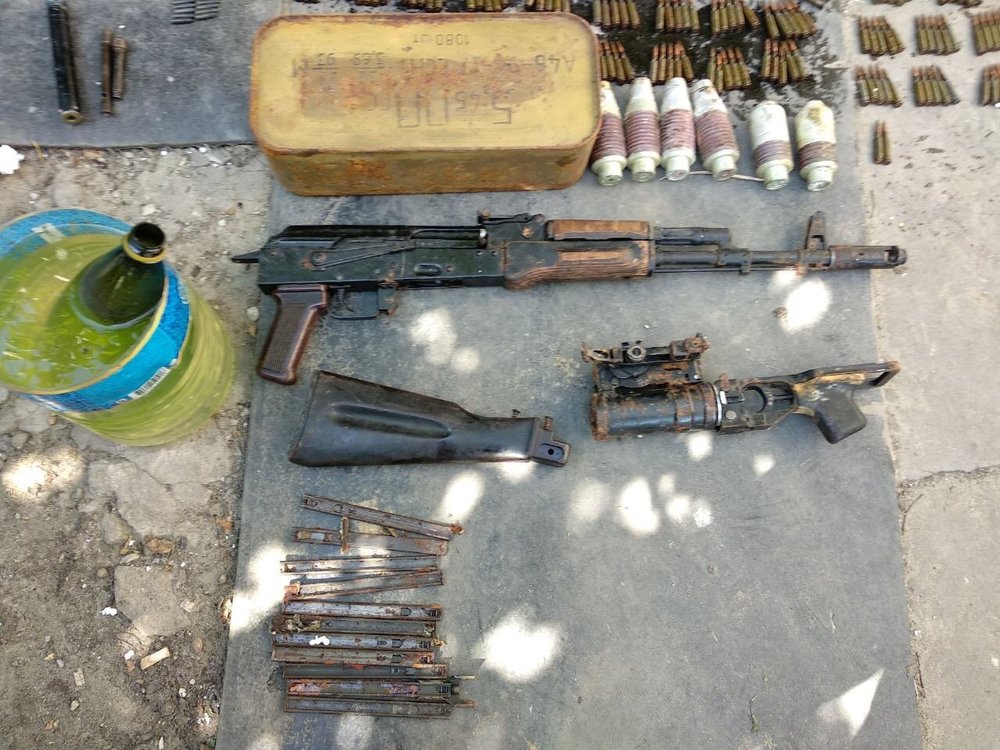 Отмечается, что при обыске частном доме у 37-летнего жителя Стаханова сотрудники Генпрокуратуры и МВД обнаружили и изъяли: автомат Калашникова; подствольный гранатомет; шесть гранат ВОГ; 2,7 тыс. патронов калибра 5,45 мм; пистолет кустарного производства калибра 5,6 мм; приспособление кустарного производства для отстрела патронов калибра 5,6 мм; 263 патрона калибра 5,6 мм.