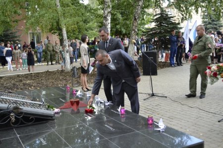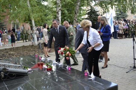 Жители района почтили минутой молчания память погибших и возложили цветы к памятному знаку.