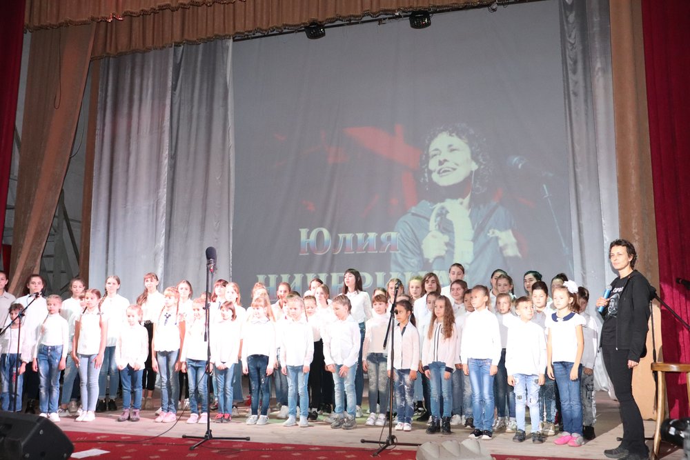 Российская рок-исполнительница Юлия Чичерина на концерте в Перевальске вместе с детьми исполнила песню памяти погибшей в Донбассе девочки.