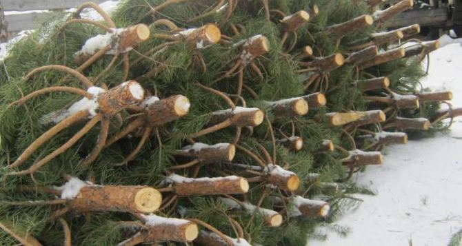 В Брянке группа молодых людей вырубила елки с территорий учебных заведений