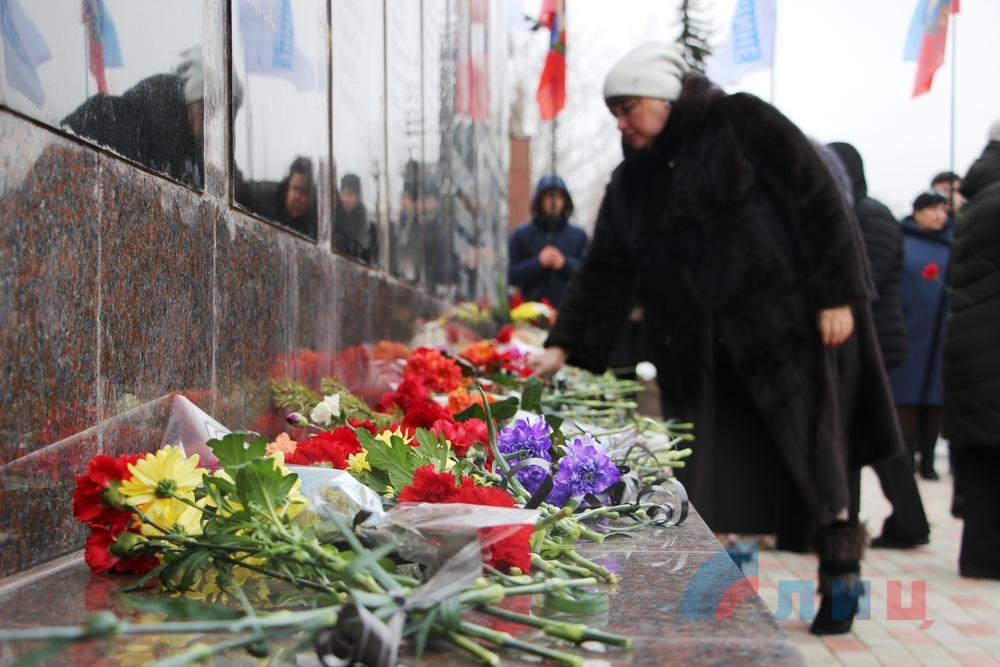 В Стаханове прошел митинг по случаю пятой годовщины первого массированного обстрела города со стороны киевских силовиков.