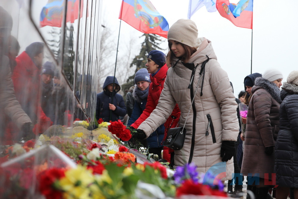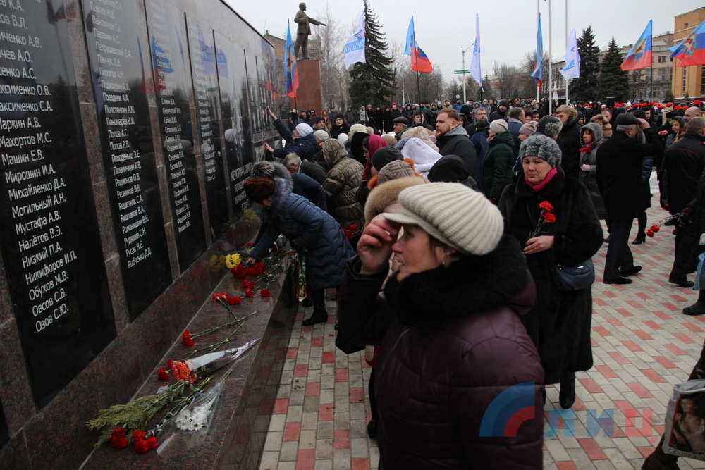 Жители Стаханова провели митинг по случаю пятой годовщины обстрела города со стороны ВСУ в 2015 году
