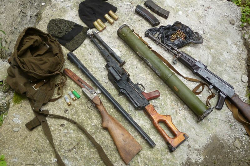 Из тайника изъяли автоматы Калашникова, автоматический гранатомет, крупнокалиберный пулемет, ручные гранаты различных модификаций, патроны для стрелкового вооружения различного калибра, гранаты для автоматических гранатометов, мины противопехотные, пулеметные ленты, выстрелы к ручному противотанковому гранатомету.