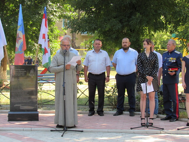 Почтить память погибших пришли глава администрации Краснодона и Краснодонского района Сергей Козенко, депутат Народного Совета ЛНР Иван Санаев, начальник управления по жизнеобеспечению Суходольска горрайонной администрации Илья Донецкий, настоятель Свято-Ксеньевского храма отец Вячеслав Берчук, военнослужащие, представители казачества, активисты общественного движения «Мир Луганщине», ветераны, жители города.