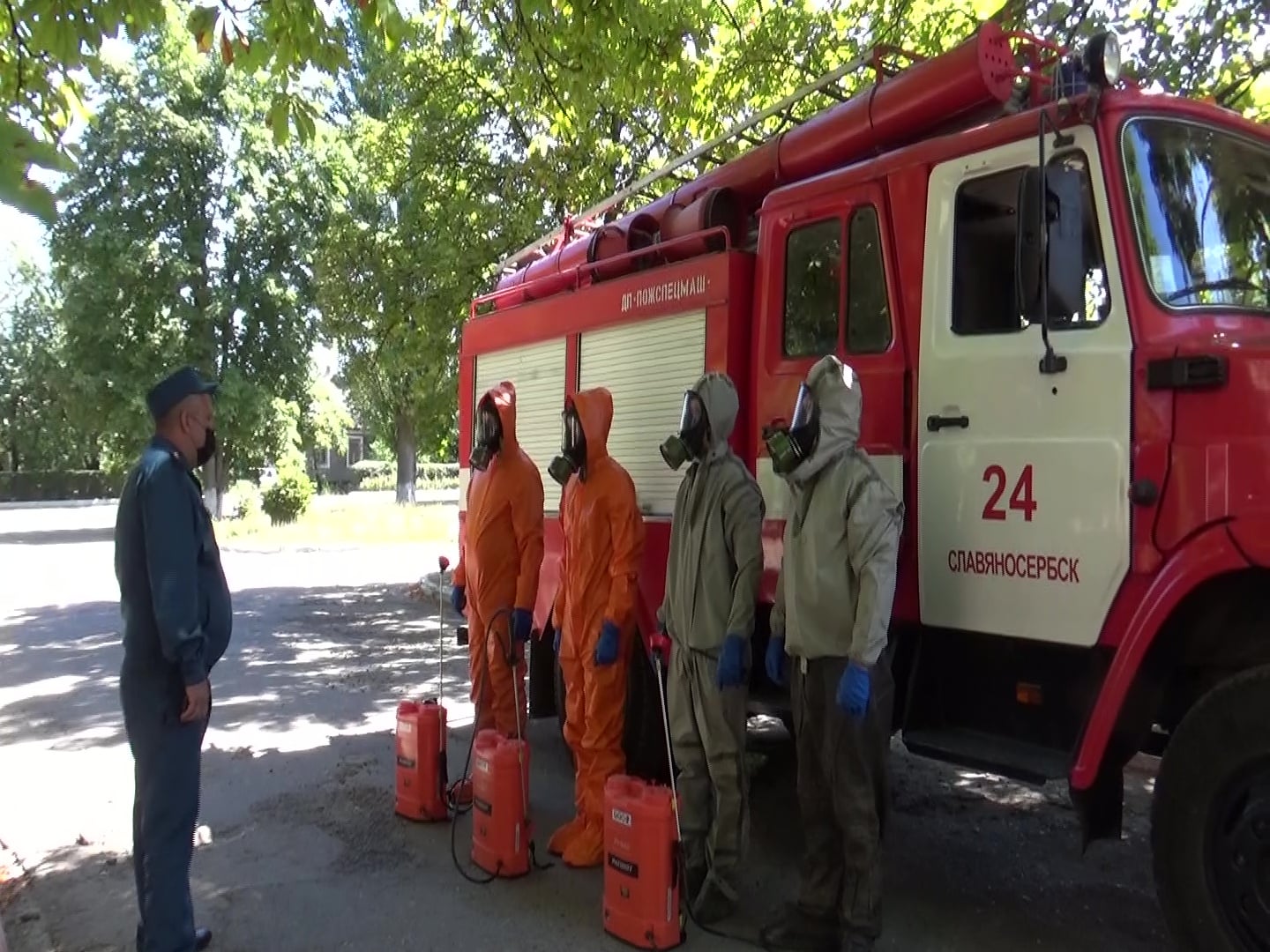В Славяносербске спасатели продезинфицировали общественный транспорт и отделение больницы