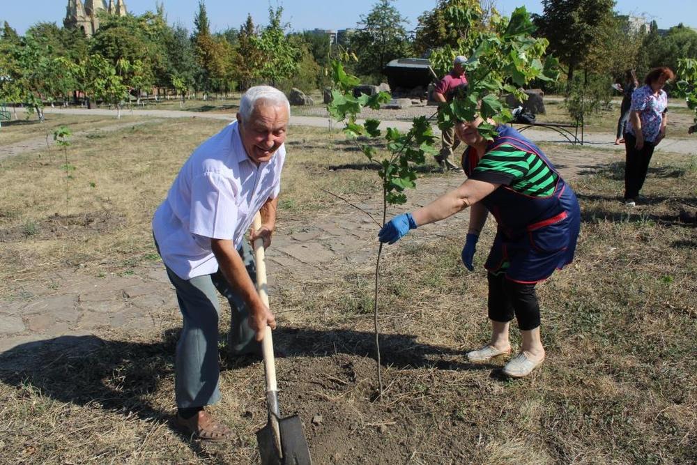 Жители Алчевска высадили в городском сквере 125 саженцев кленов в честь Дня города.