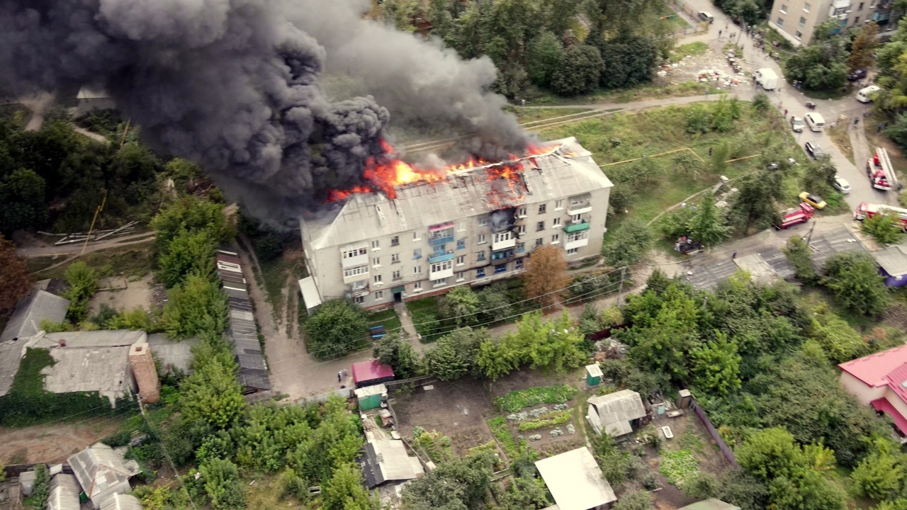 По прибытию наблюдались обрушение и горение крыши по всей площади четырёхэтажного дома, горение балкона квартиры на четвёртом этаже.
