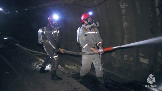 Спасатели ликвидируют пожар на шахте «Суходольская-Восточная» в Краснодоне.