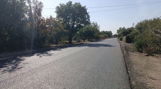 Специалисты выполняют ремонт верхнего слоя асфальтобетонного покрытия участка дороги, связывающей село Роскошное с Луганском.