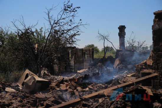 Киевские силовики в ходе артиллерийского обстрела села Желобок уничтожили дом и все имущество последней жительницы села, женщина в шоковом состоянии доставлена в больницу
