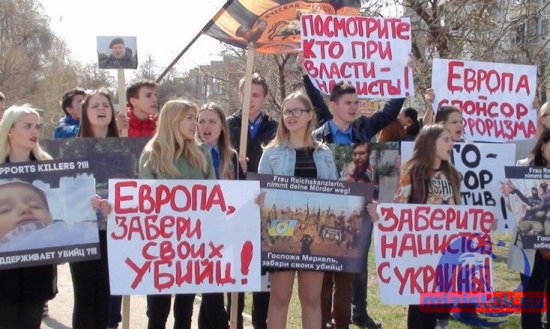 Вчера, 13 апреля, в Луганске возле здания ОБСЕ прошёл митинг, посвященный четвертой годовщине начала на Донбассе так называемой антитеррористической операции