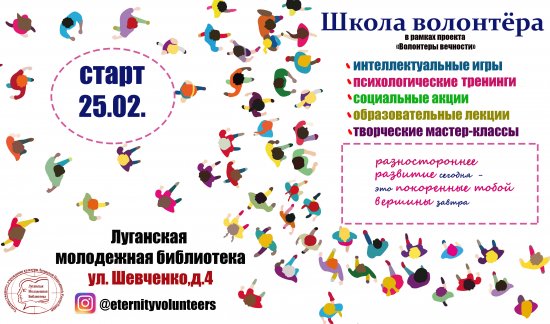 25 февраля в Луганской молодёжной библиотеке начинает свою работу образовательная программа «Школа волонтера» в рамках проекта «Волонтеры вечности»