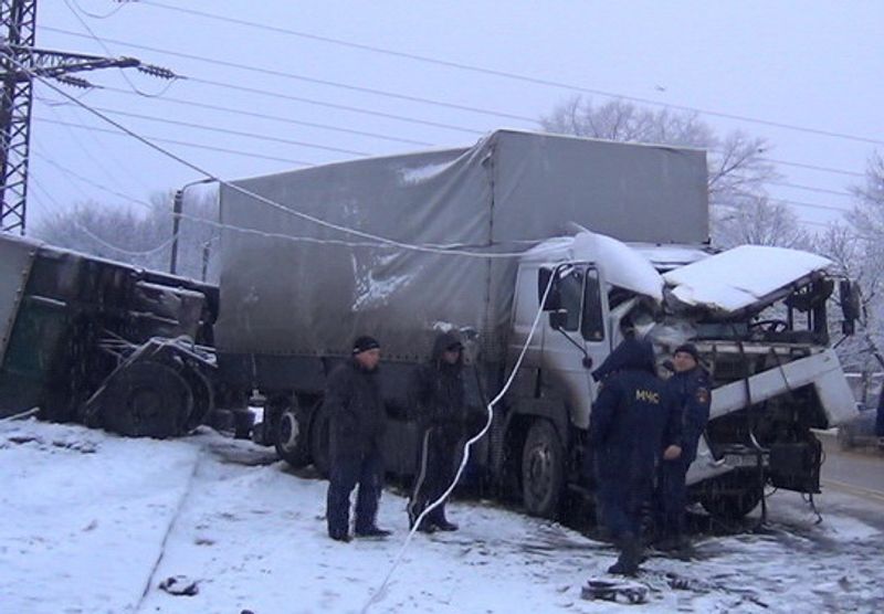 Сегодня, 7 декабря, в районе улиц Краснодонской и Филатова в Луганске перевернулся грузовик