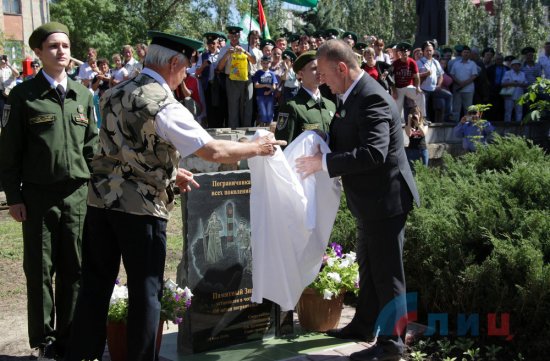 Церемония открытия памятного знака «Пограничникам всех поколений…» состоялась в Луганске во время митинга, посвященного 100-летию образования погранвойск