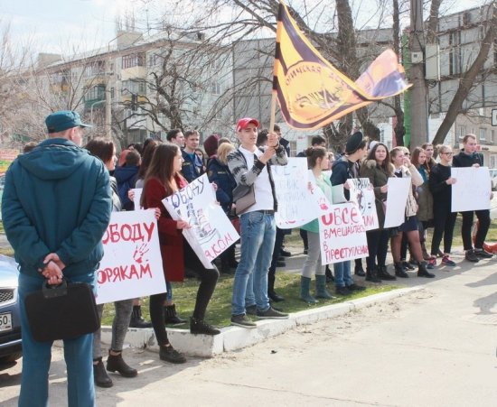Вчера, 5 апреля, у здания СММ ОБСЕ в Луганске молодёжные активисты провели митинг в поддержку экипажа русского судна «Норд», который был захвачен украинской погранслужбой в нейтральных водах Азовского моря 26 марта
