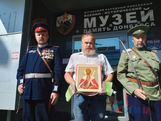 Санкт-петербургский иконописец, уроженец Луганска, народный художник Луганщины Евгений Ковалев передал в дар Свято-Георгиевскому храму Стаханова икону святого благоверного князя Александра Невского