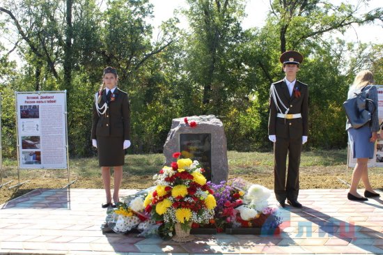 В Славяносербском районе прошел митинг, в ходе которого был открыт памятный знак мирным жителям, погибшим в результате агрессии ВСУ
