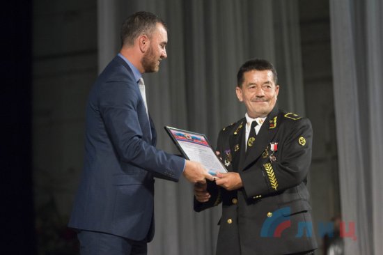 Власти Луганской Народной Республики на торжественном собрании по случаю Дня шахтера вручили государственные награды, ключи от автомобилей и телевизоры отличившимся горнякам ЛНР
