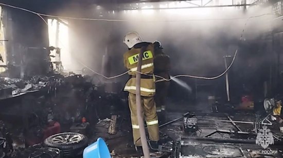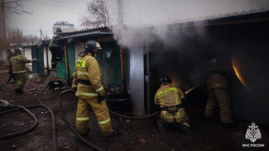 Спасатели МЧС России ликвидировали загорание гаража на частном подворье в Алчевске.