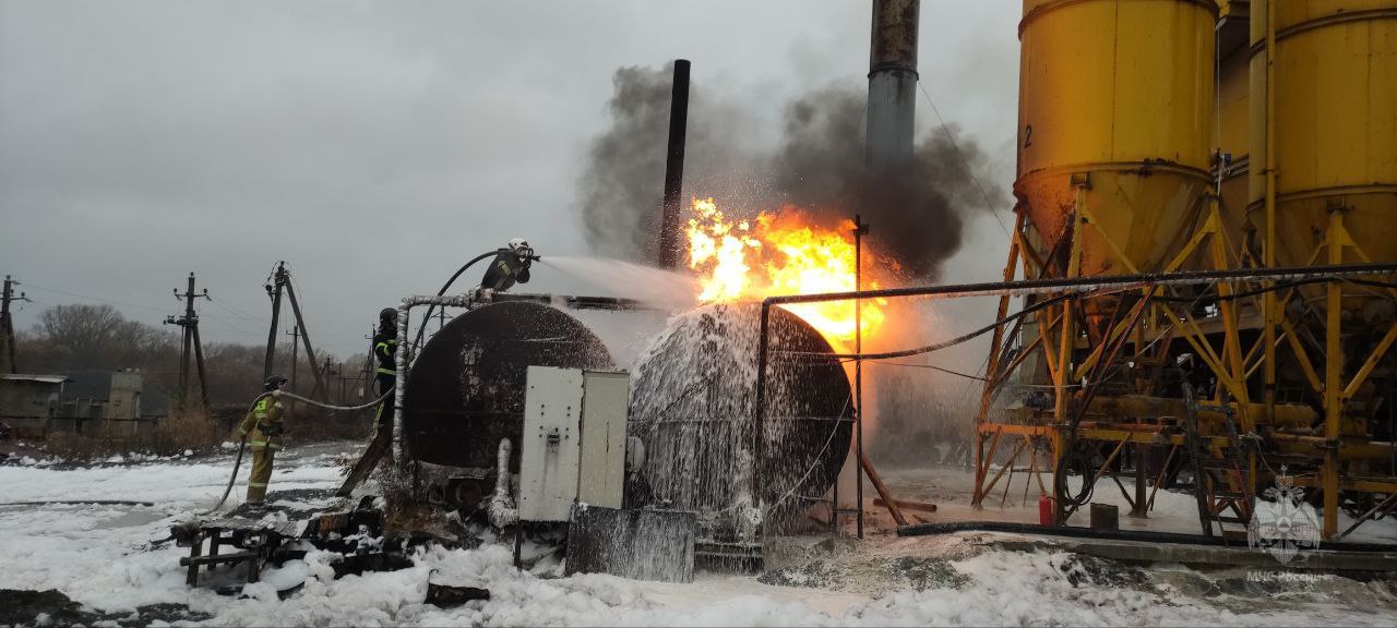 Сообщается, что на предприятии горит цистерна с 25 тоннами битума. Огнеборцы уже локализовали огонь и не допустили распространения на рядом стоящую емкость.