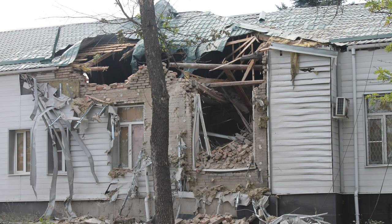 У поликлиники полностью разрушена крыша, которая буквально «провалилась» на третий этаж строения. В хирургическом отделении, где располагается администрация больницы, и в терапевтическом корпусе также полностью уничтожена кровля. Более того, один из снарядов ВСУ разрушил переход между лечебными корпусами.