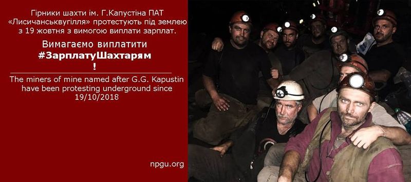 Горняки шахты имени Капустина предприятия «Лисичанскуголь», что на оккупированной территории ЛНР, уже 21 дней не поднимались на поверхность, протестуя против долгов по зарплате.