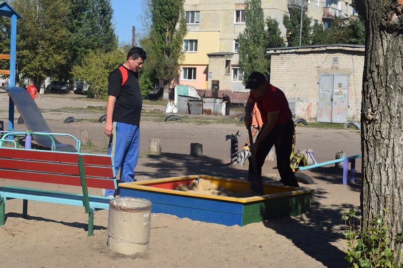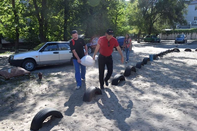 «Сегодня с моим хорошим другом, активным депутатом Северодонецкого городского совета Евгением Лагуновым провернули одно доброе дело. "Отжали" у бизнесмена Николая Мягкого, ремонтирующего наш Центральный парк культуры и отдыха, прямо с объекта десять мешков песка. На дежурной машине мы отвезли песок в песочницу во дворе дома 19 по пр. Гвардейскому, закрепленного за округом Евгения. А Николай Васильевич Мягкий, я думаю, не обидится. Ведь мы взяли песок для северодонецких детей. Делайте добрые дела. Тем более, для наших деток. Любовь и доброта помогут нам», — прокомментировал фото «кражи» Пригеба.
