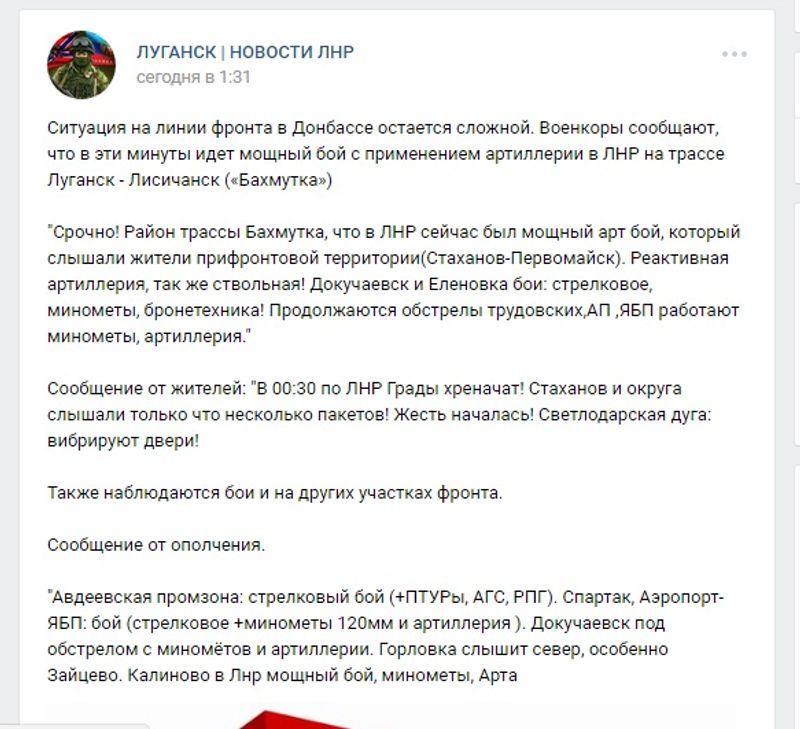 Сегодня ночью, 20 декабря, на трассе Луганск - Лисичанск («Бахмутка») шел мощный бой с применением артиллерии.