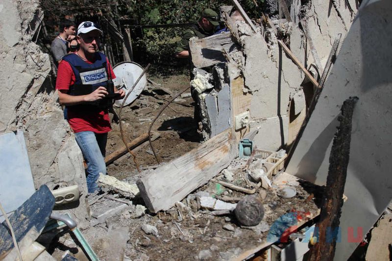 Представители Республики в Совместном центре по контролю и координации режима прекращения огня и представители Специальной мониторинговой миссии ОБСЕ зафиксировали последствия ночного обстрела Кировска со стороны киевских силовиков.