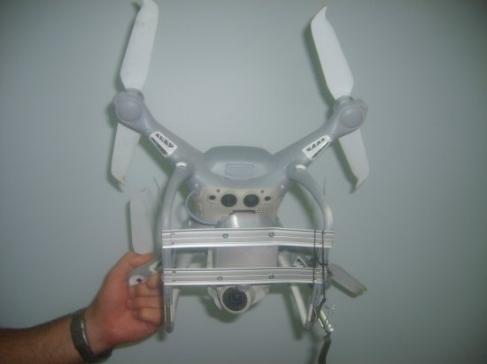 Марочко отметил, что кроме разведывательной видео- и фотоаппаратуры беспилотник был оборудован электромагнитным устройством для переноски и сброса ручной гранаты, который был прикреплен снизу корпуса.